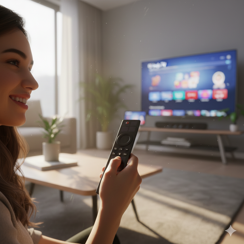 The design is minimal and elegant — soft matte texture, comfortable grip, Google’s signature circular navigation pad, built-in Google Assistant voice command, and Bluetooth smart pairing. It even features Find My Remote — a lifesaver for those moments when it disappears into the sofa.