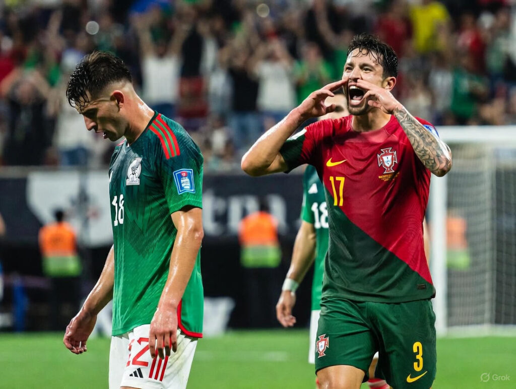 Before halftime, Portugal delivered what many called the moment of the match — a breathtaking long-range strike from João Pereira that dipped perfectly under the crossbar. The stadium gasped. Commentators called it a goal of the tournament contender. At 3–0, Mexico’s spirit began to fade.